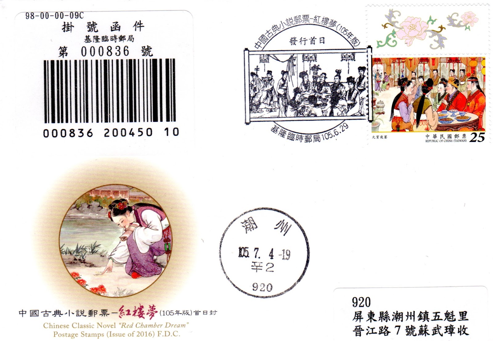 FDC's from China, Posted on June 18, 2016 from Jiaxing,Zhejiang to Taipei