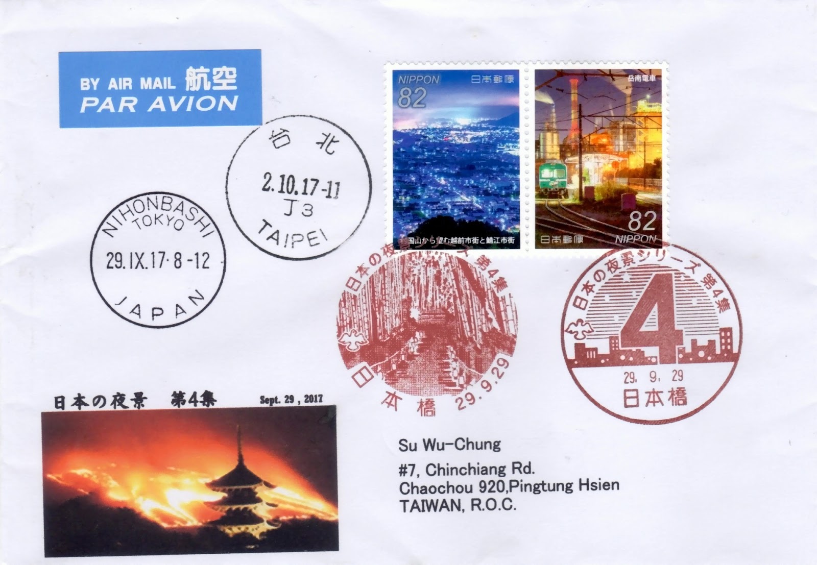 FDC's from Japan, Posted on September 29, 2017 from Nihonbashi to Taipei